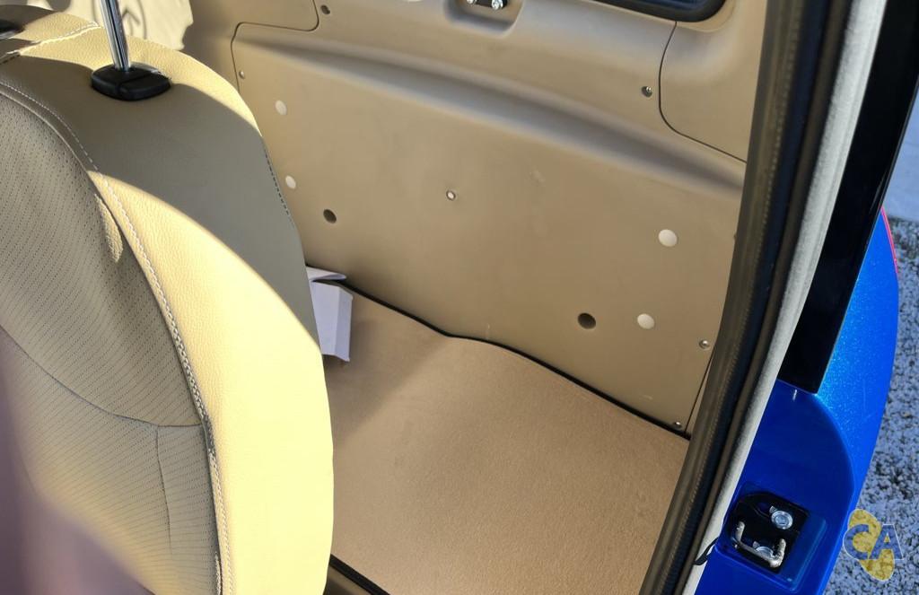 Questa auto senza patente FREEDOM DUE è dotata di VOLANTE, comandi semplici e ampio vano di carico dietro il sedile.