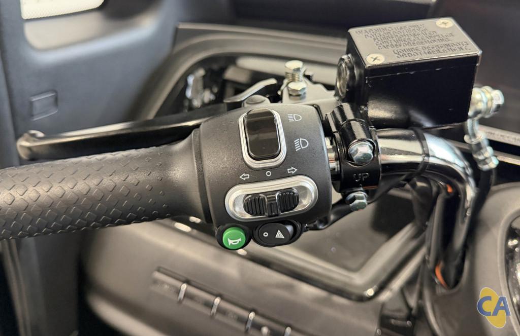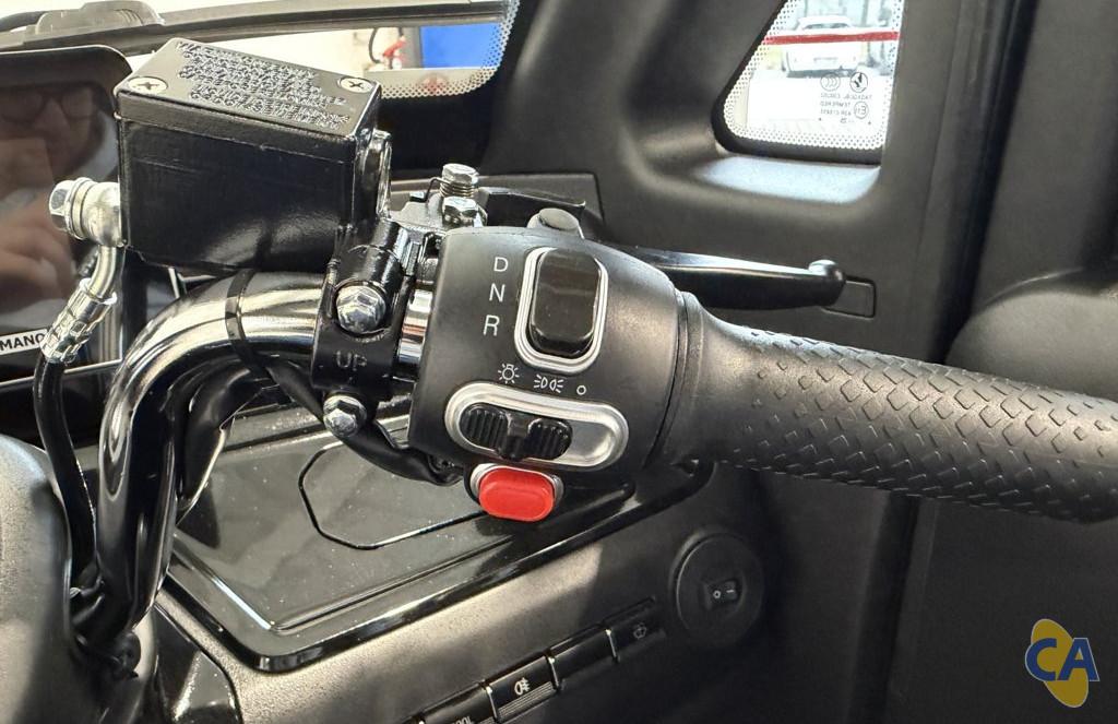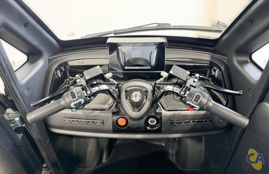 Questa macchina senza patente è dotata di manubrio e si guida come uno scooter tradizionale con cambio automatico: troviamo, infatti, un selettore di marcia sul manubrio oltre che freni (anteriore e posteriore) e acceleratore a manopola!